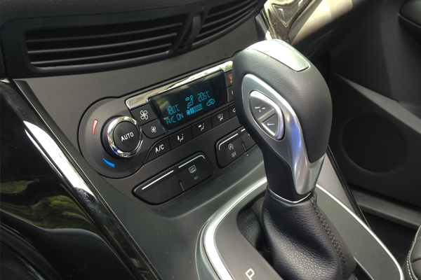 雙區獨立空調控制、排檔桿,還有自動熄火功能的開關。