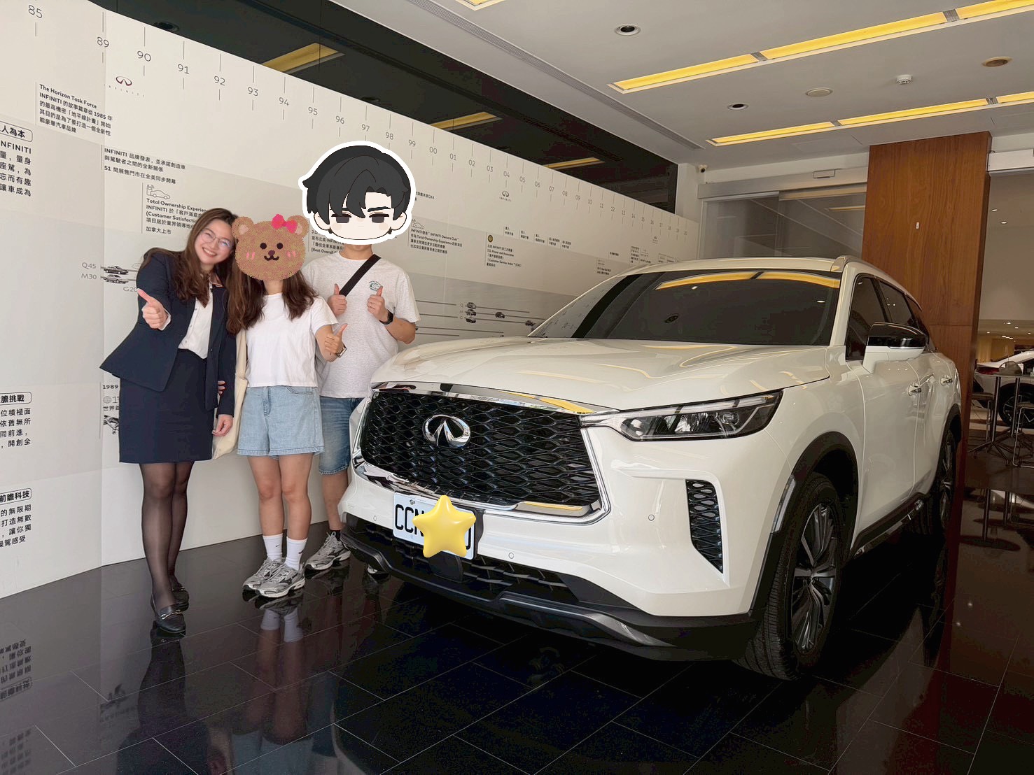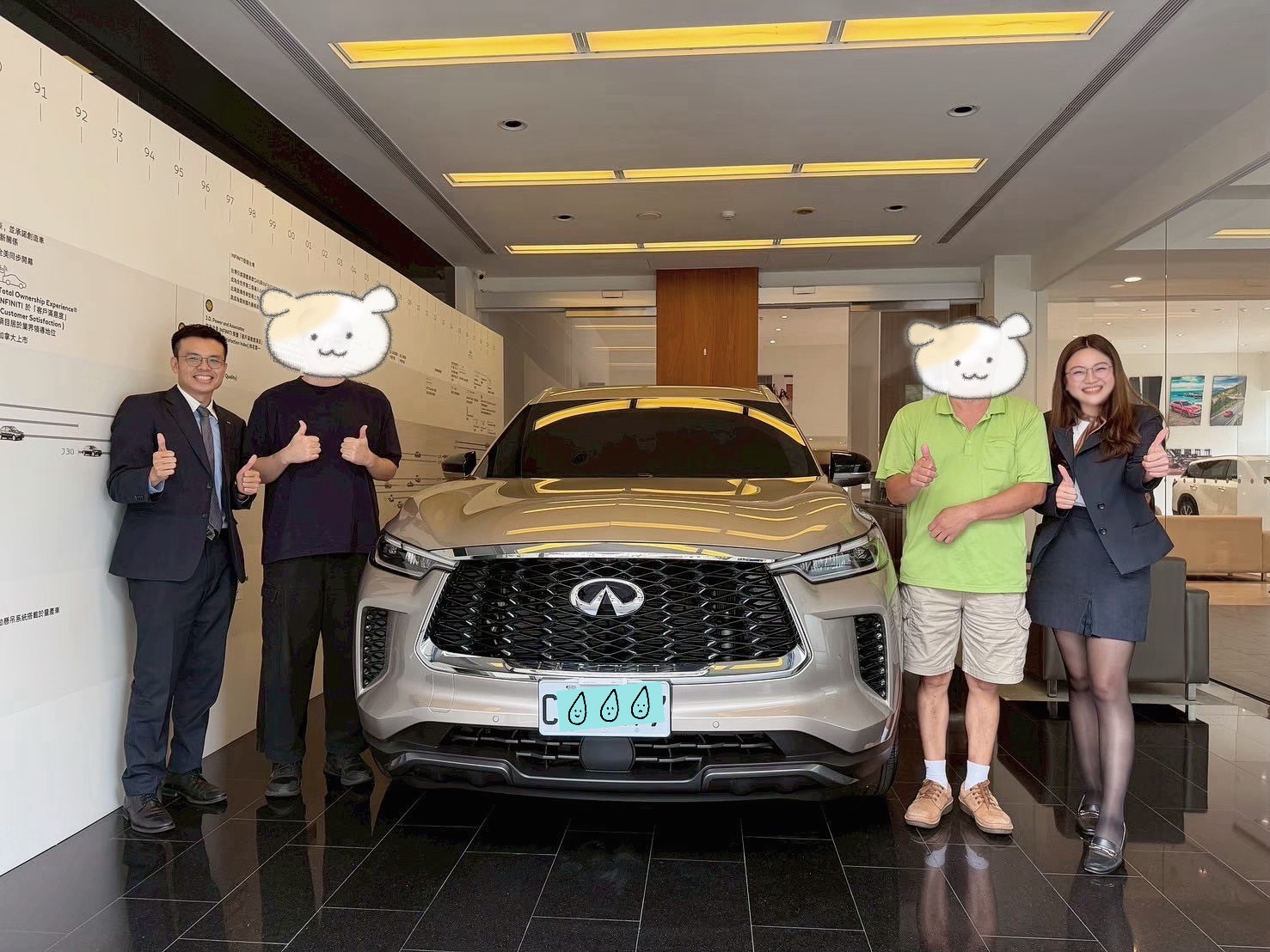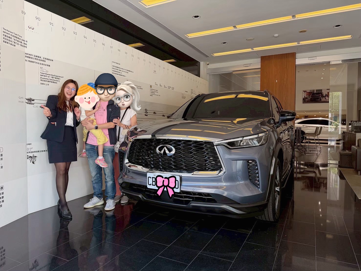 - 成交故事:感謝許小姐一家特地從新竹南下台中完成交車,許小姐一直偏好大器又舒適的車款,也關注 QX60 許久,最終在年底前順利實現入手心願。謝謝您們的信任與支持,給予致瑩服務的機會,很榮幸能陪伴一家人迎接這個重要時刻,祝福未來每一趟旅程都安心自在、幸福滿載~