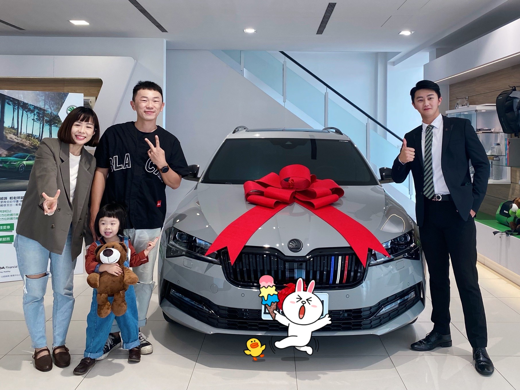 • 成交故事: 記得當時試乘Superb時,對理性客戶來說,真的想體驗Sport系列後才真的能做決定,在試乘車、展示車都沒有的狀況下,我跟我已交車的客戶溝通是否可以借愛車一看,很意外客戶是一口答應,也很熱心的借客戶試駕。在看到實車搭載原廠運動化外觀與內裝,濃厚的熱血氣息震撼力遠比型錄與照片,客戶試駕時也不時哇哇讚嘆!然而訂車後卻是一波三折,在疫情影響與晶片短缺之際,車輛等待時間需要一段時間,交車當天車主看到實車也興奮不已,唯獨女兒對這台車沒有特別感觸,也因為當時有想到這點,特地準備熊玩偶給妹妹,讓車主交車喜悅,也能讓妹妹一起同歡。穿著熊熊衣服的妹妹全程都抱著熊熊,讓交車過程就在圓滿喜悅的氛圍中落幕。我是浚恩,專業、服務印象深!